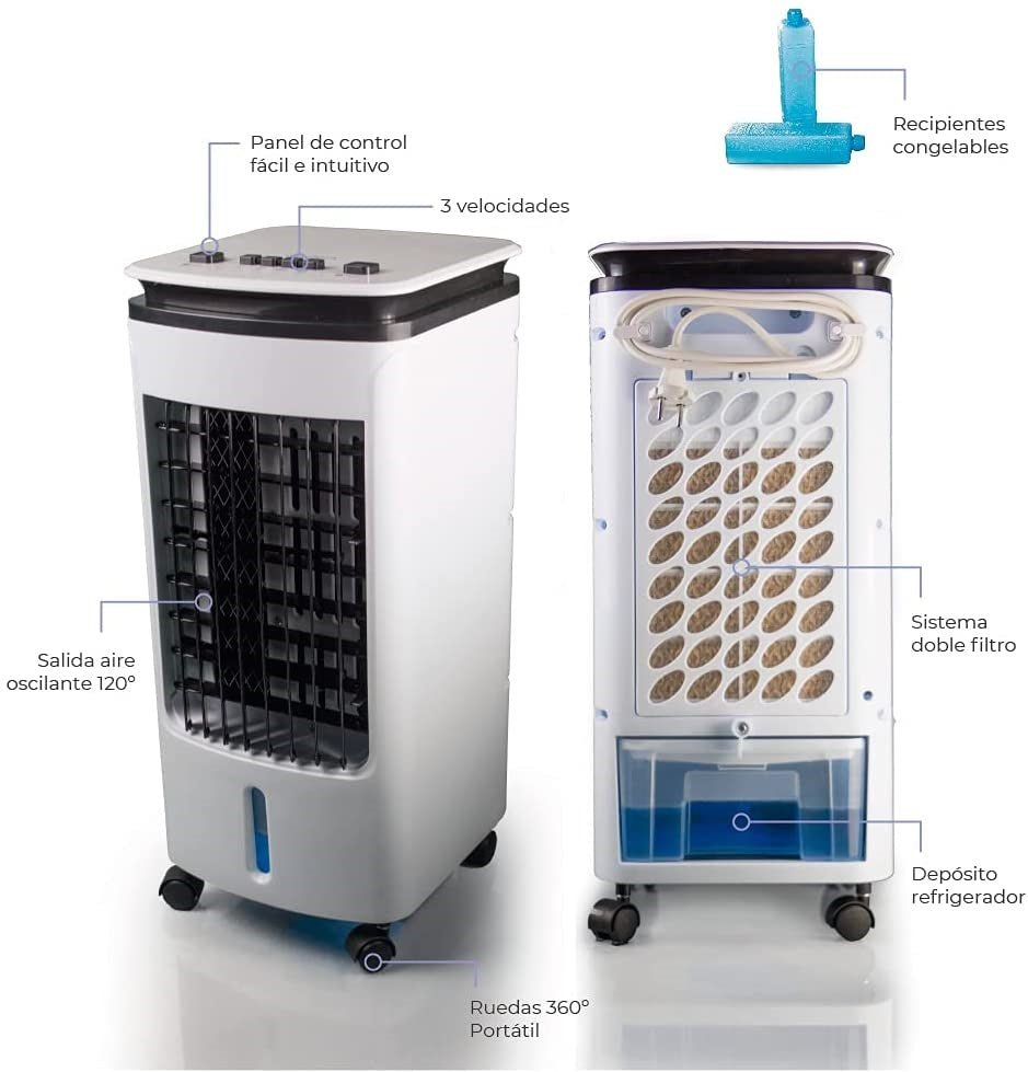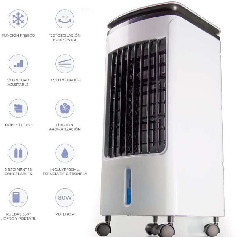 El Aire Acondicionado Max Star 4 en 1 brinda una manera fácil de usar y económica de enfriar, en espacios interiores y exteriores. Refrigerador, humidificador, purificador y ventilador. Puede utilizarse como único sistema de refrigeración o como complemento de los sistemas de aire acondicionado existentes. Combina las propiedades refrescantes naturales del agua con una brisa constante para reducir las temperaturas interiores, brindando un funcionamiento silencioso que aporta tranquilidad a tu hogar.