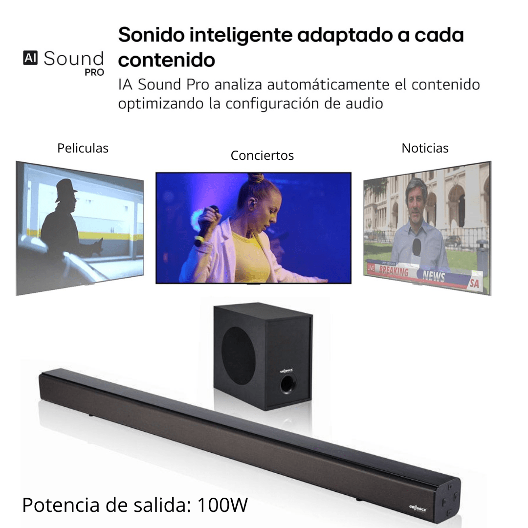 Parece una excelente opción para mejorar el sonido de tu televisor y crear una experiencia más inmersiva en tu hogar. Aquí tienes un desglose de lo que ofrece esta barra de sonido con subwoofer inalámbrico: