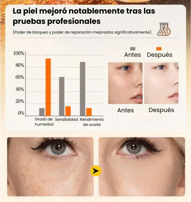 💛 Textura ligera, efecto tensor inmediato y acabado natural.