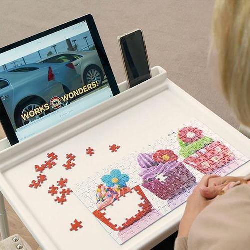 Este increíble nuevo diseño de Mesa Plegable Multiuso cuenta con una ranura muy cómoda en la que podrás colocar tu tablet o móvil, permitiéndote ver tus vídeos mientras realizas tarea. Podemos ajustarla a cualquier posición según la tarea que vayamos a realizar. Gracias a sus múltiples configuraciones, además es totalmente plegable, no ocupa espacio y nos permite guardarla en cualquier lugar, como por ejemplo debajo del sofá o la cama.