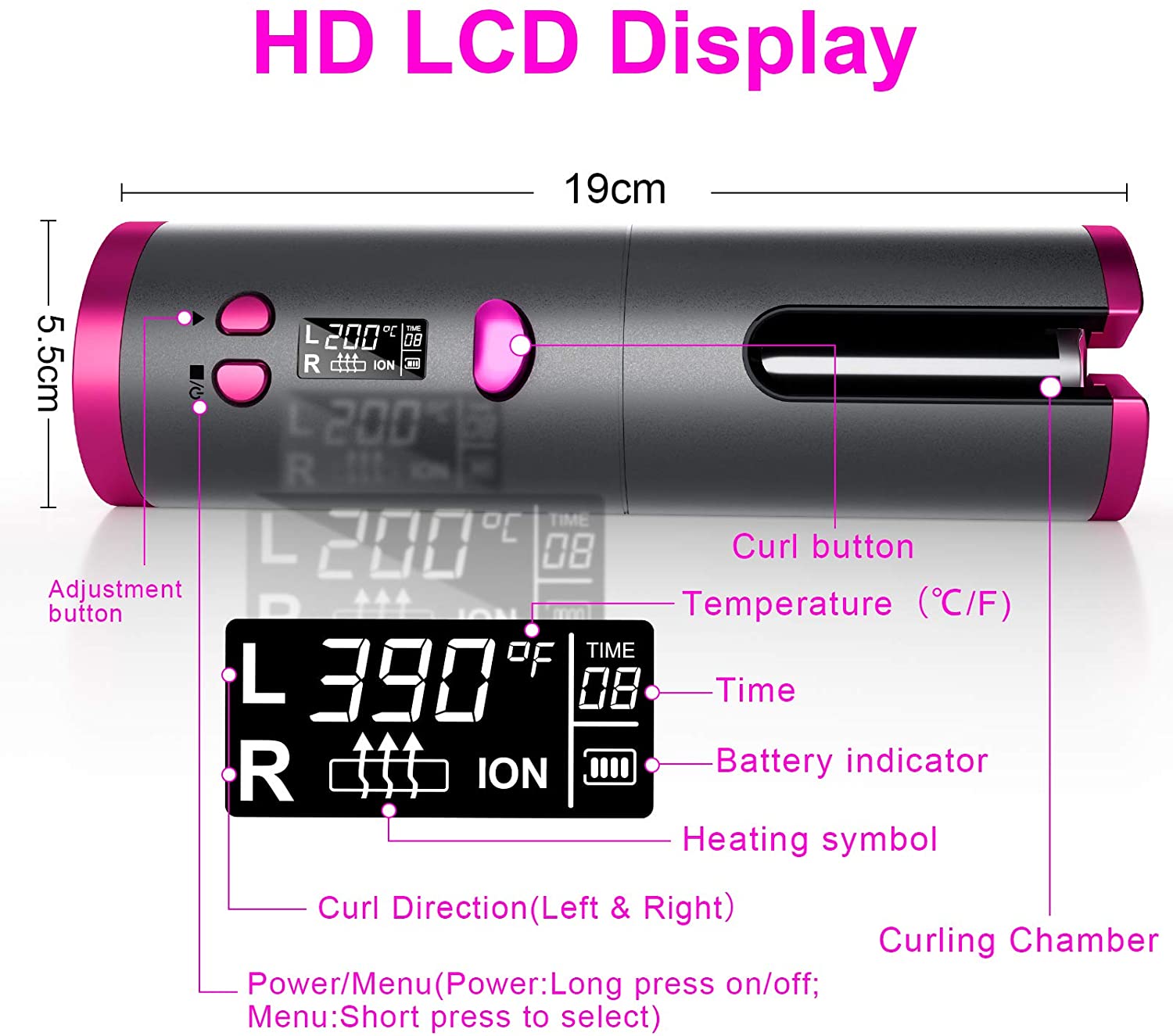 Dile adiós al diseño de cable desordenado y enredado. 3-4 horas de tiempo de carga completa pueden funcionar hasta 60 minutos. Sin restricciones de cable, puede rizar su cabello en cualquier lugar.