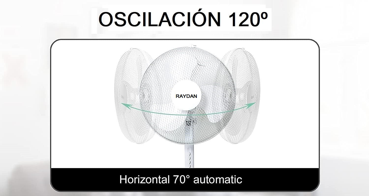 Dispone de un rango de oscilación de 70 grados, lo que permitirá que el caudal de aire emitido alcance casi cualquier zona de la habitación en la que esté ubicado, también es posible fijar el movimiento en una posición.