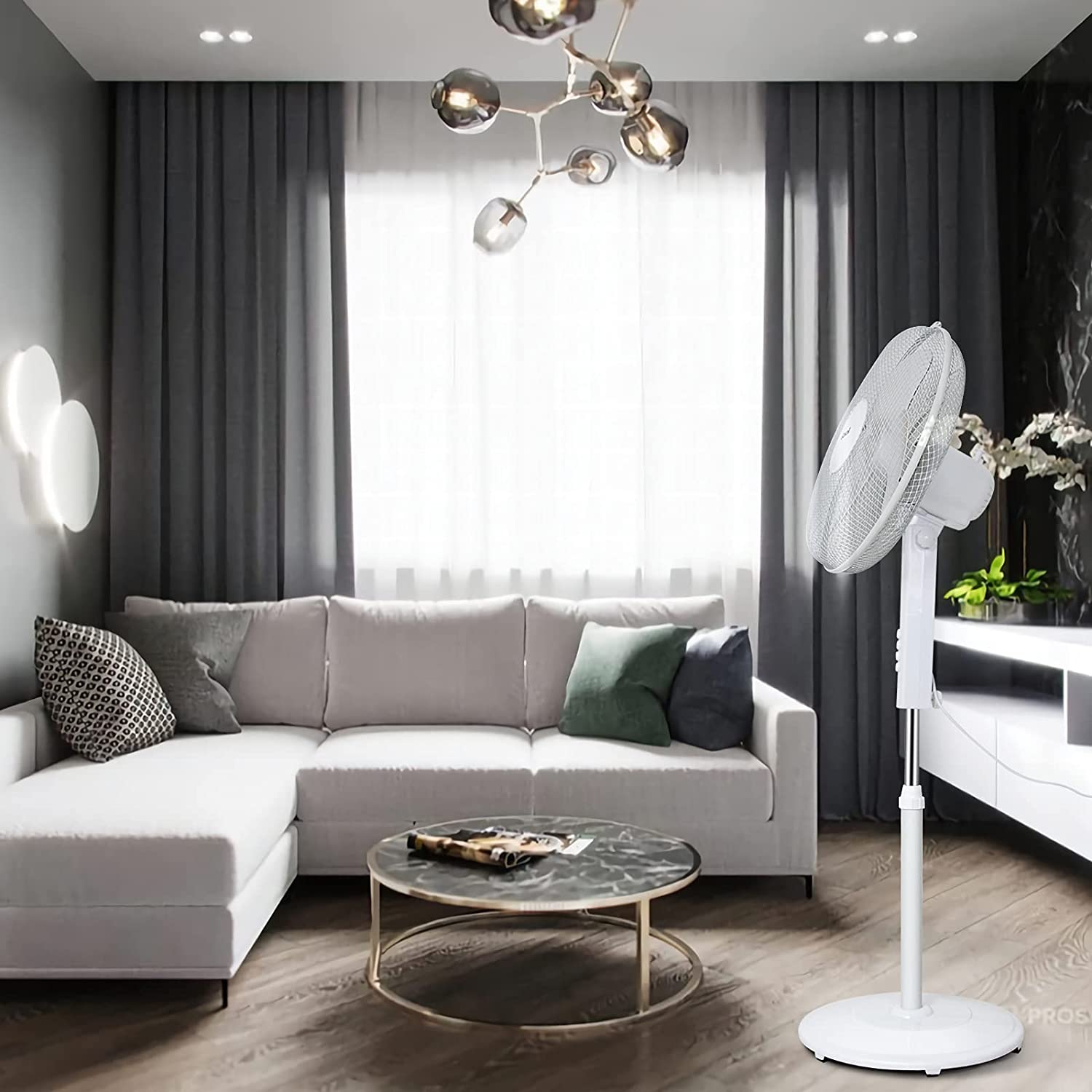El Ventilador de Pie dispone de una base redonda que le otorga una mayor estabilidad y rejilla de seguridad, lo cual te brindara mayor sensación de seguridad a la hora de usarlo. Diseño minimalista que se adapta a la decoración de tu hogar; además, el ventilador es completamente regulable con una barra telescópica ajustable en altura de 111 a 128 cm que se adecuada a cada tipo de usuario y situación